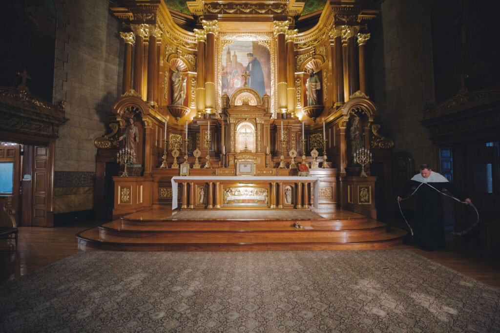 We arrived early at St. John Cantius church to begin setting up right after the morning Mass.